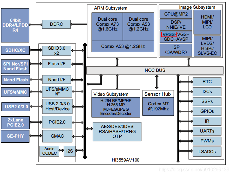 首先芯片的逻辑框图中VPSS处于image subsystem: