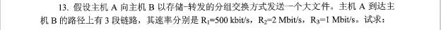 1) 该文件传送的吞吐量 Thr=min{R1,R2,R3}=500kbps;