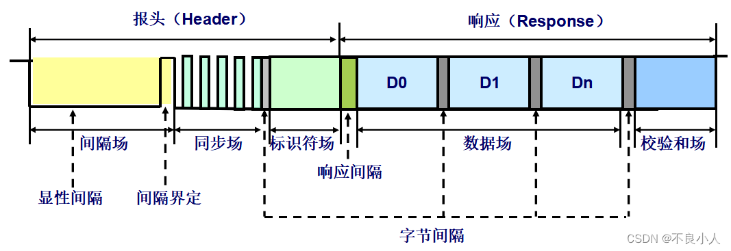 数据场n+1个字节D0-Dn,LIN一帧数据最大可以传8个字节(n<=7)