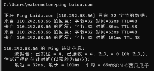 Ping向目标主机(地址)发送一个回送请求数据包,要求目标主机收到请求后给予答复,从而判断网络的响应时间和本机是否与目标主机(地址)联通。
