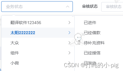 需求点el-cascader一共两级,第一级数据由接口返回;点击第一级的展开icon,拿第一级的id去请求接口获取第二级的数据;el-cascader需带有模糊搜索功能。<el-form-item label="业务状态" prop="businessStatus"><el-cascaderref="casader"clearablekey="casader":options="