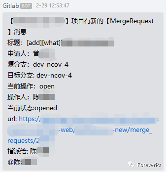 为了不让消息泛滥,目前我们仅对接了MergeRequest、Pipeline、Issue三大模块的消息。