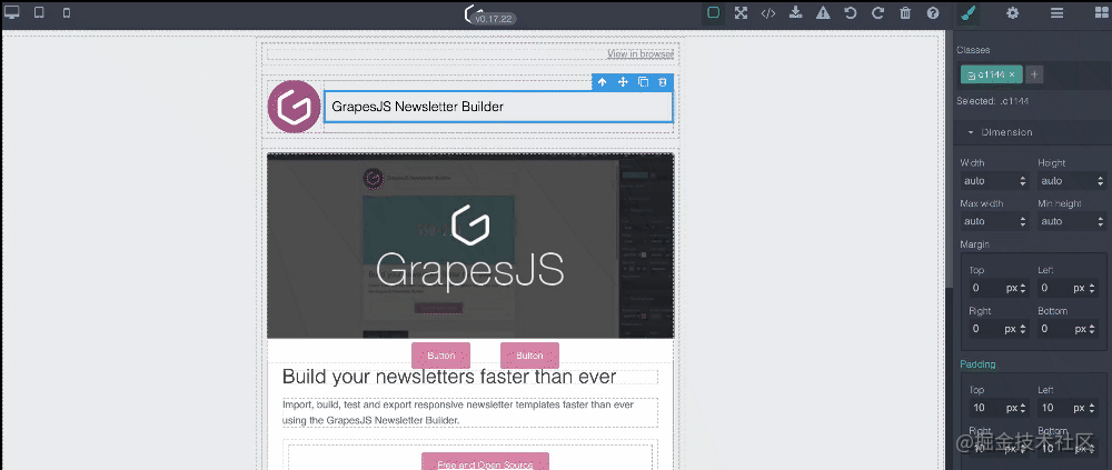 那么 GrapesJS 还有很多有意思的功能我们可以挖掘, 接下来我和大家分享一款基于GrapesJS 二次封装的一个开源编辑器框架 craft.js。