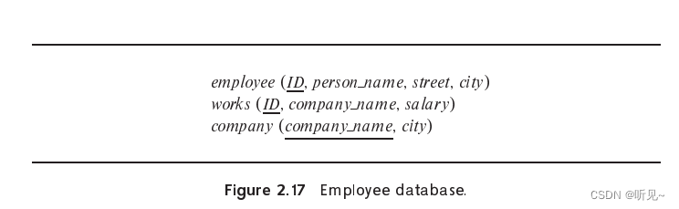 2.1 考虑图 2.17 中的员工数据库。这些关系上适当的主码是什么?