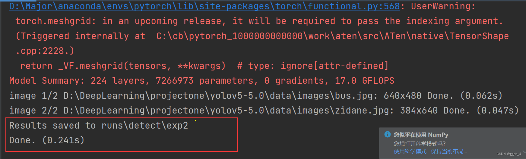 3.再次运行【detect.py】结果:在D:\DeepLearning\projectone\yolov5-5.0\runs\detect\exp2中生成了预测的结果图片,但是没有预测框?????