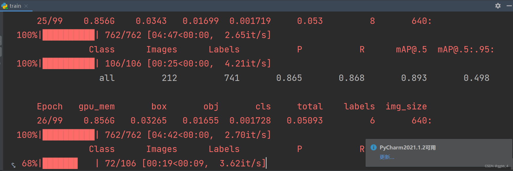 训练过程中输出的参数:刚好在训练时写这篇博客,贴个图吧