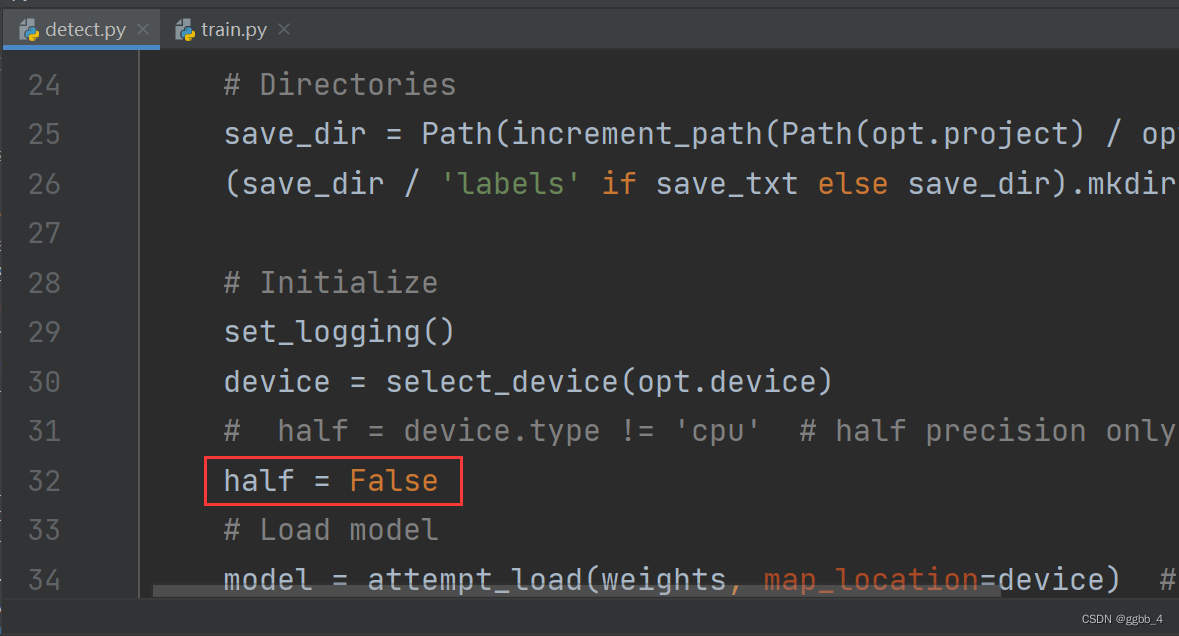 解决方法2:在【detect.py】,定位到32行,注释掉原来的代码,更改为