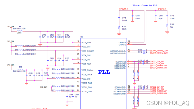 PIN40、41:反馈到PLL1,参考输入到PLL2。AC耦合;