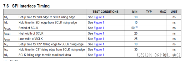 3、进行SPI时序编写时,务必按照图七的时序要求,除此之外,在FPGA内设计SPI代码时一定要可读可写,这样一来在FPGA配置寄存器时就能够知道每个寄存器内部配置的值是否正确,这一步是控制整个芯片工作时,FPGA要完成的第一步工作。