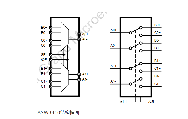 ASW3410 是一个 2:1 或 1:2 的数据开关,用于 高速数据传输。 ASW3410 数据开关支持高性能的各类高速数据 传输协议,如下: