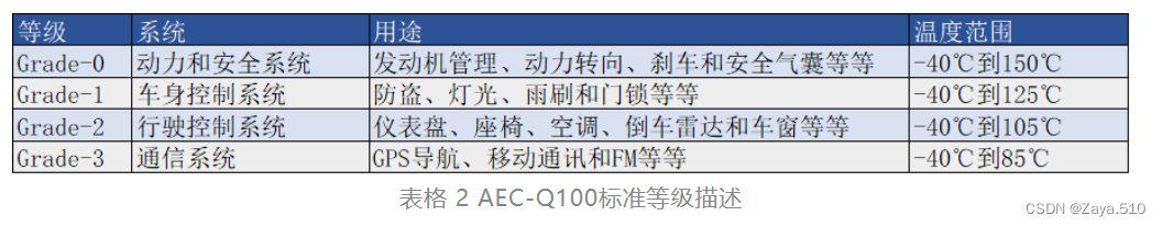 ①AEC(automotive electronics council)汽车电子协会中Q100(针对集成芯片的要求)中grade-1要求,温度范围-40~125℃;