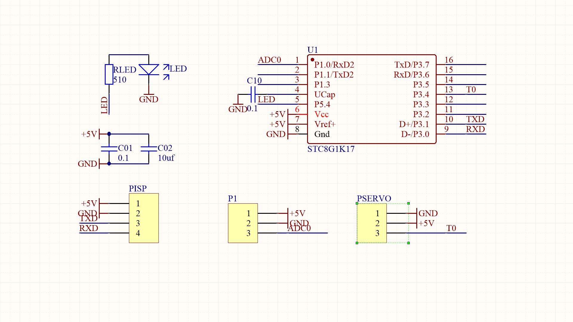手边有一个语音台灯电路, 下面准备通过使用一个单片机, 读取语音台灯上LED端口电压的变化, 从而控制外部的一个舵机, 实现语音对舵机的控制。