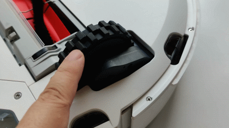 尘盒拆卸非常简单,按住卡扣即可轻松拿下。拿下之后可以看到灰尘吸入口。