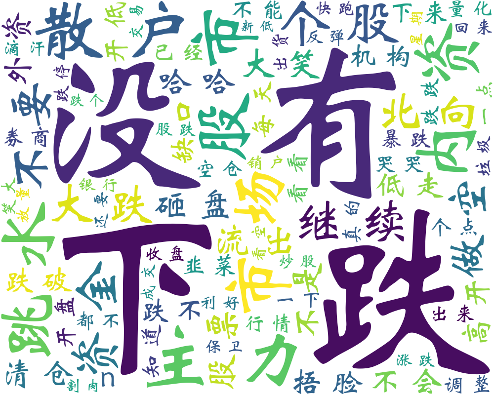 情绪为积极时“大笑”、“牛市”、“反弹”等为高频词汇,情绪为消极时“没有”、“下跌”、“跳水”为高频词汇。