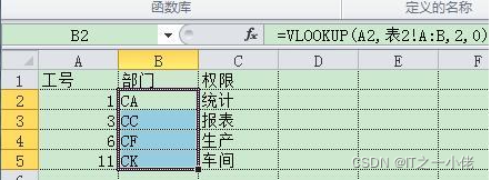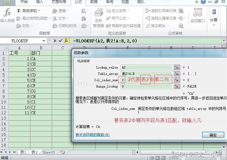 5.table_array---表2中鼠标拉取的方式把关联字段和要填充的字段选中或者在table_array中输入表2!A:B