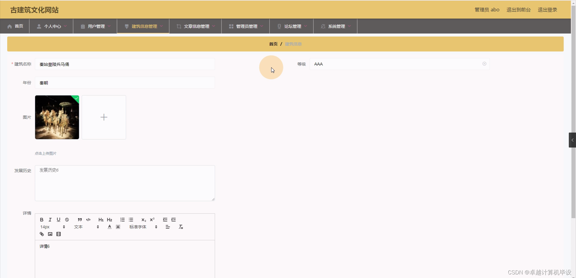 文章信息功能:建立一个专门的文章库,收录相关领域的学术论文、研究报告、专题文章等,为用户提供权威的古建筑研究成果。