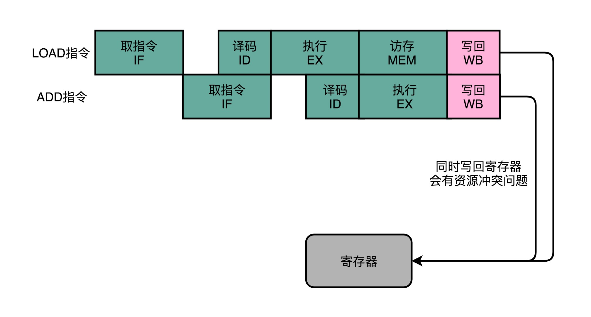 有些指令没有对应的流水线阶段,但是我们并不能跳过对应的阶段直接执行下一阶段。不然,如果我们先后执行一条LOAD指令和一条ADD指令,就会发生LOAD指令的WB阶段和ADD指令的WB阶段,