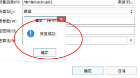 3)回到上级目录,再选择【恢复】,并生成下图内容(都是默认),继续【确认】,最后显示 【恢复成功】