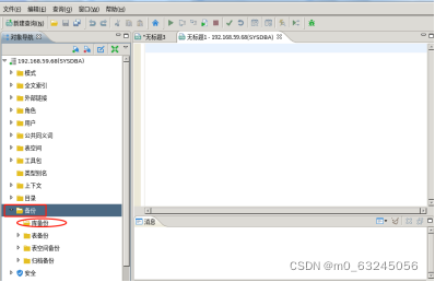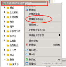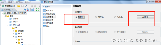 首先进行数据库归档,右键左边红框内容【192.168.59.68(SYSDBA)】,在左键点击【管理服务器】