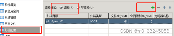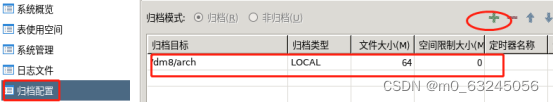 设定归档路径 dm8/arch 、归档类型、归档大小 64M 、空间大小不限制