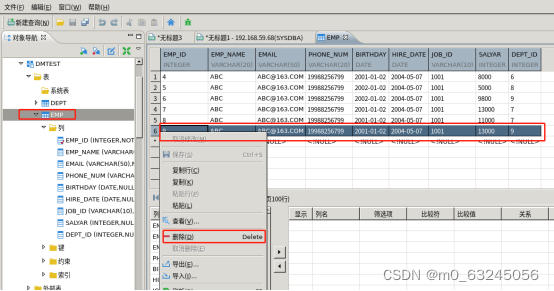 命令:delete from DMTEST.EMP where EMP.EMP_ID=1;