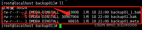 数据库全备份已经完成,进入【dm8/backup01】目录查看是否有文件生成