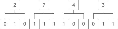 八进制整数转换为二进制整数时,思路是相反的,每一位八进制数字转换为三位二进制数字,运算的顺序也是从低位向高位依次进行。下图演示了如何将八进制整数 2743 转换为二进制: