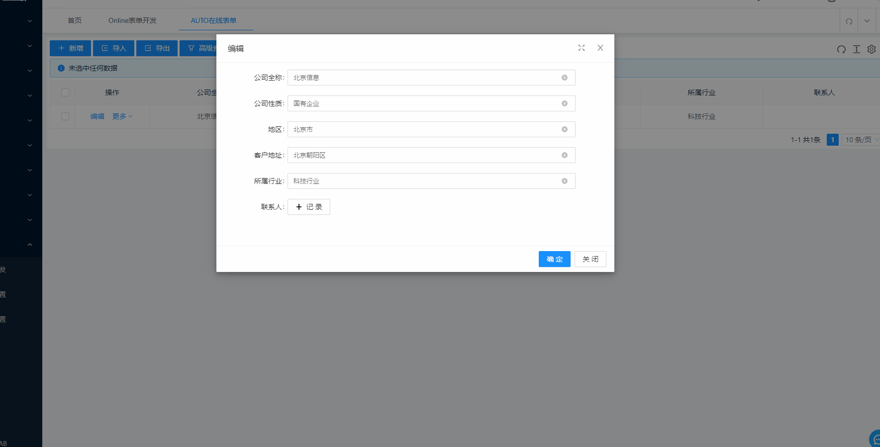 - 关联一条他表记录效果(一个联系人只能属于一个客户)
