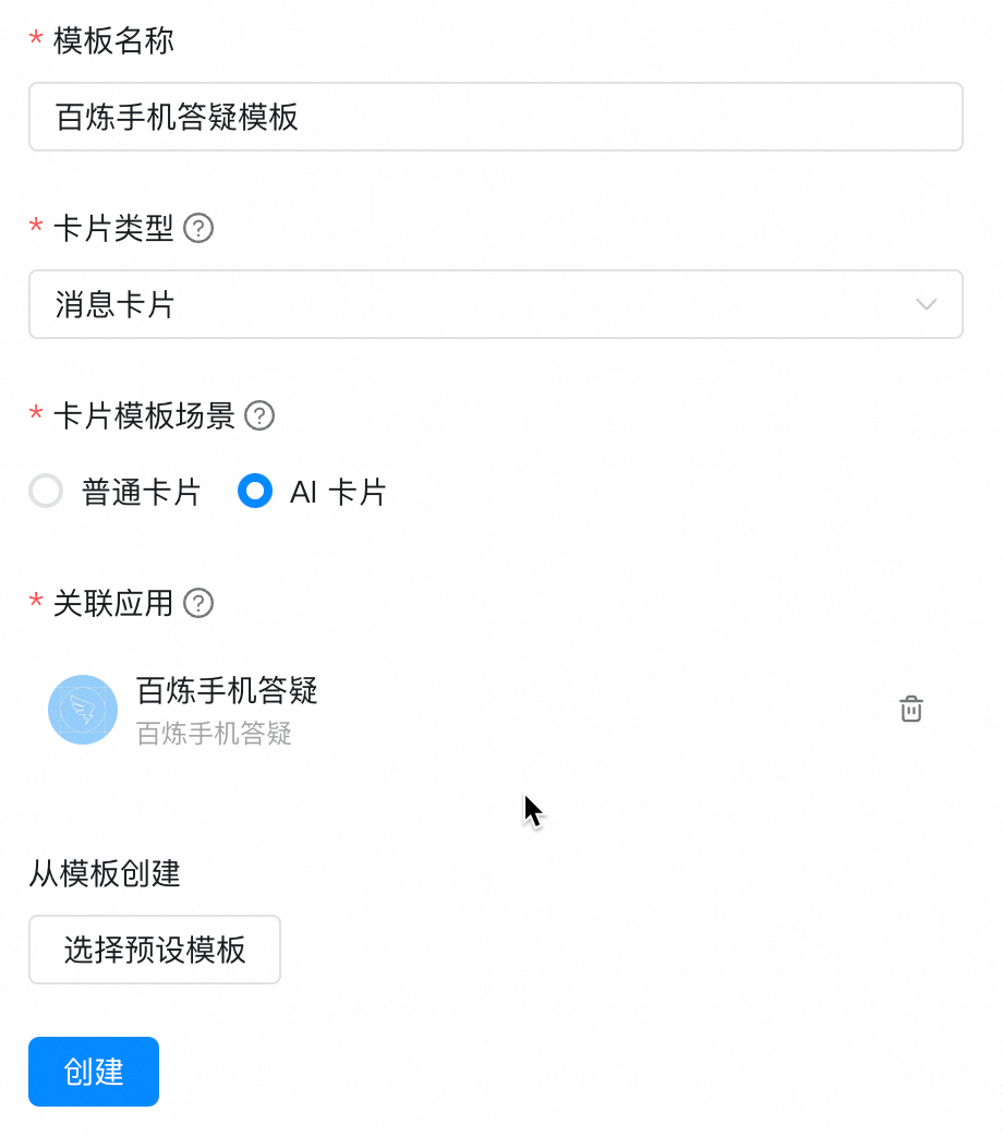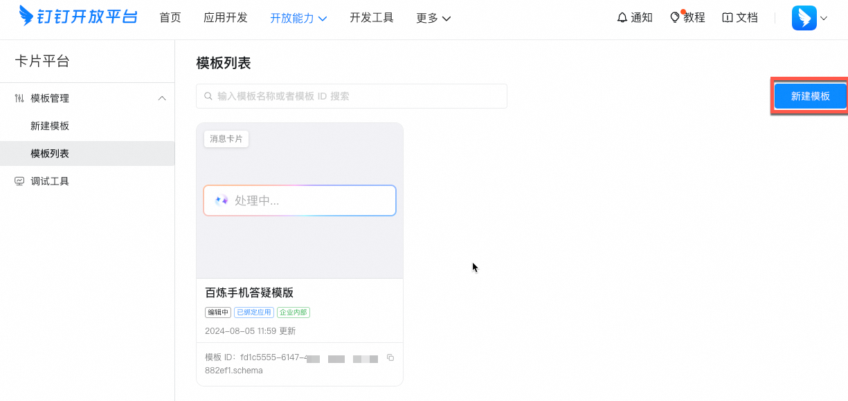 钉钉机器人通过卡片消息支持流式返回结果,您需要创建卡片模板供消息发送使用。