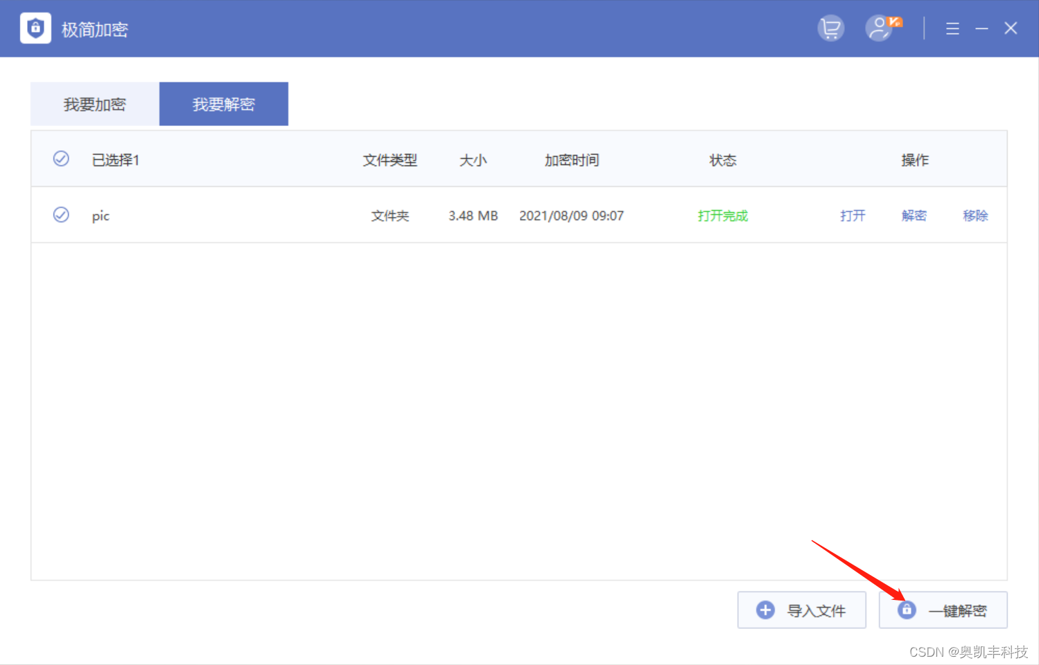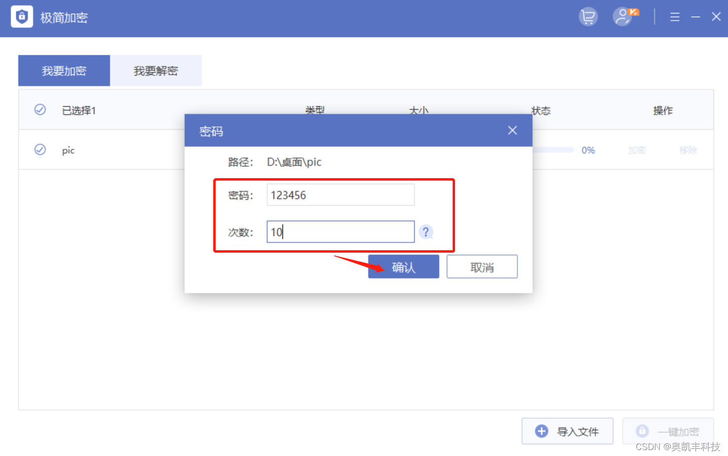 Windows加密在更换系统后,通过原系统加密的文件就无法解密了,所以除了Windows自带的文件加密功能,我们也可以使用加密软件对文件进行加密,比如奥凯丰 极简加密限制就没有那么多了,支持多种文件、文件夹加密,支持限制打开文件次数。