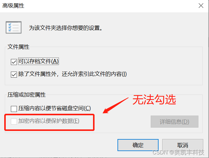 “加密内容以便保护数据“是灰色的,无法勾选?