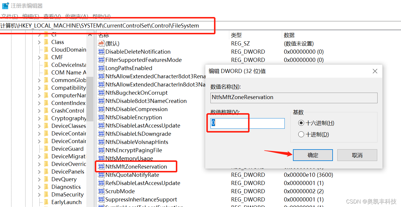 在注册表中,依次点击HKEY_LOCAL_MACHINE \ System \ CurrentControlSet \ Control \ FileSystem,然后找到NtfsDisableEncryption,双击它,将数值数据调整为0,点击确定。设置之后再查看一下是否能够使用Windows加密功能。