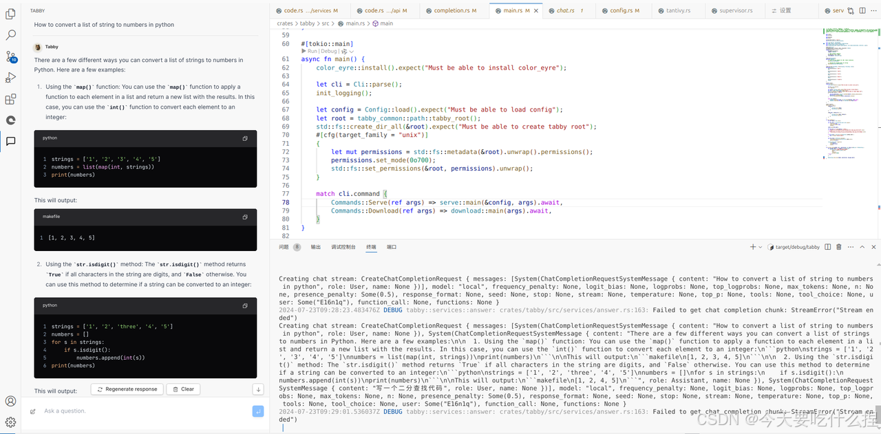通过阅读本文档,您可以快速了解开源代码项目Tabby的核心模块与服务流程,并且参照文档可以在本地部署一个Tabby AI代码助手进行使用。文末附上鼠鼠我在学习Tabby项目中的一些心得分享,希望对零大型项目代码阅读经验的小白有所帮助捏~ :D(PS:本文是鼠鼠之前7月学习的笔记,距离现在有一段时间了,学习的版本是v0.13.1。截至到2024.10.28,已发布到v0.18.0,仅供参考捏~)