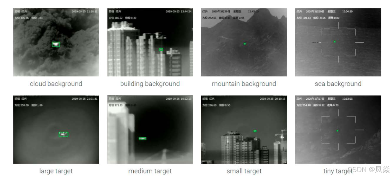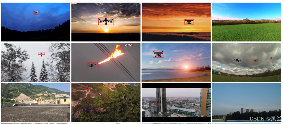 其使用的数据集为Anti-UAV410数据集,现发表在TPAMI2024期刊上(Anti-UAV410: A Thermal Infrared Benchmark and Customized Scheme for Tracking Drones in the Wild | IEEE Journals & Magazine | IEEE Xplore),包含410个红外单模态无人机序列,包含多种场景,如下图所示。