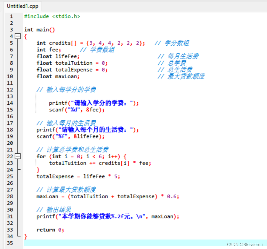 printf("本学期你能够贷款%.2f元。\n", maxLoan);