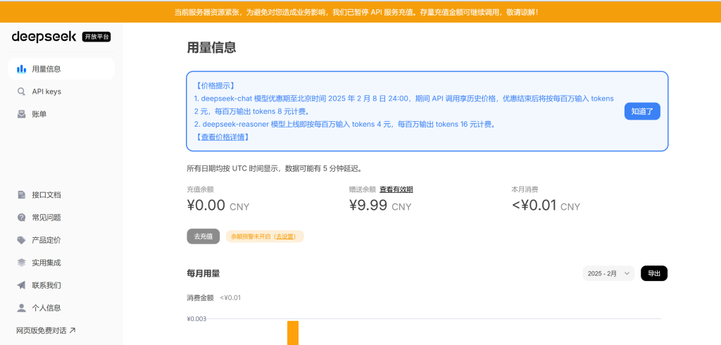 首先去deepseek官网DeepSeek | 深度求索注册一下,创建好自己的apikey.
