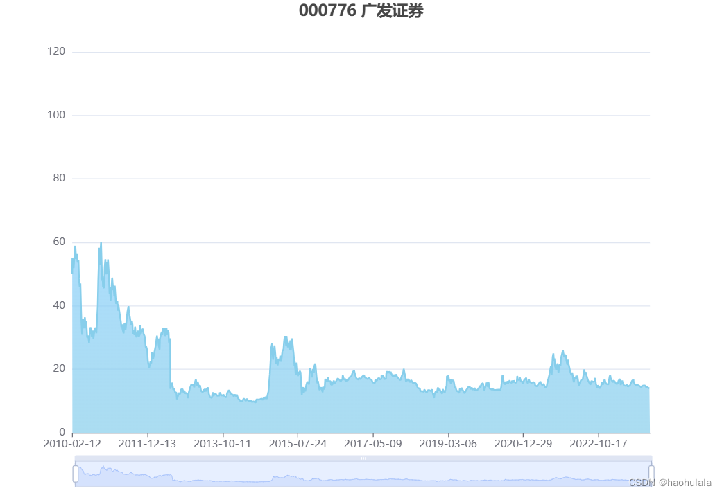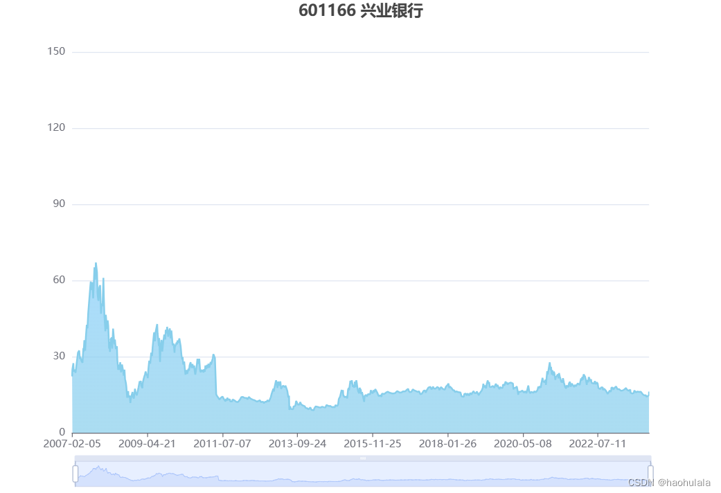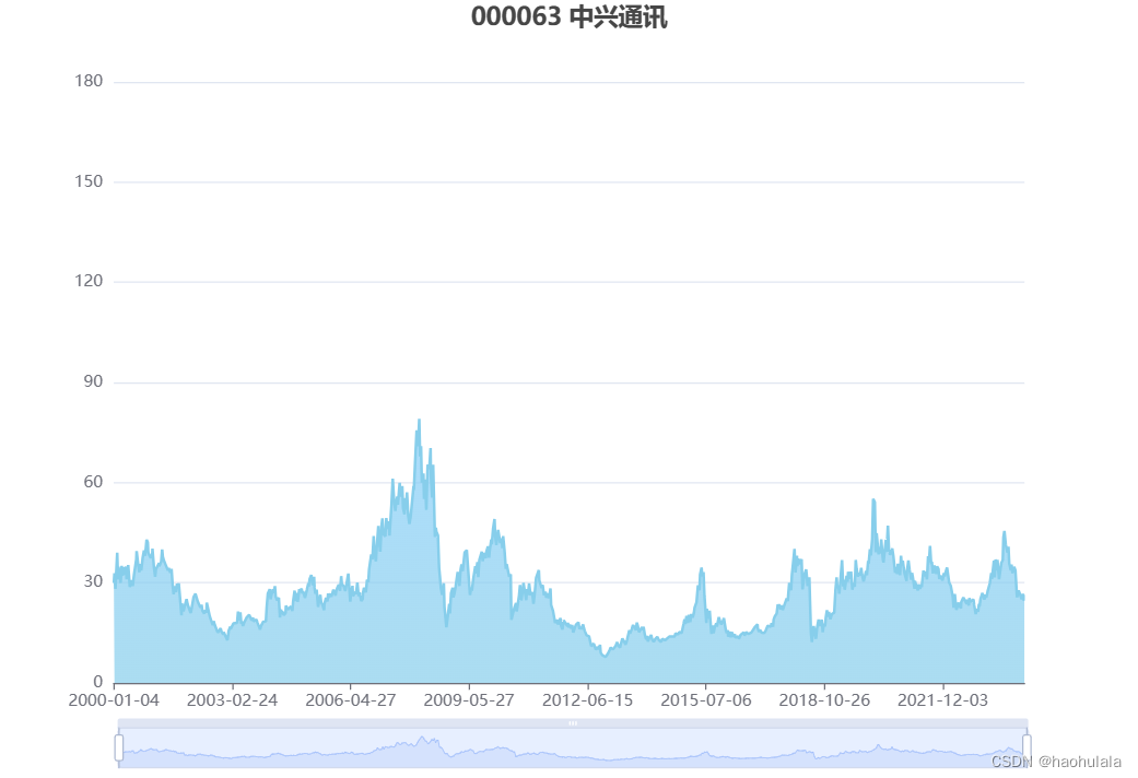 本文展示了通过网络爬虫获取个股详细数据,并且进行数据展示的方法,通过这个方法可以查询个股数据,并且用图表的方式将股票价格展示出来,这样可以非常直观地观察某一只股票的价格走势,由于获取到的数据量非常大,后期还可以进行一定的数据分析,如果你有什么想法欢迎和我交流,下面展示一下获取到的股票走势图。