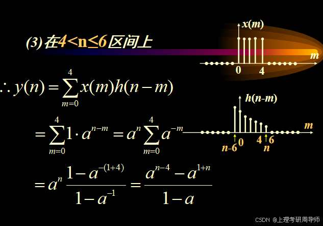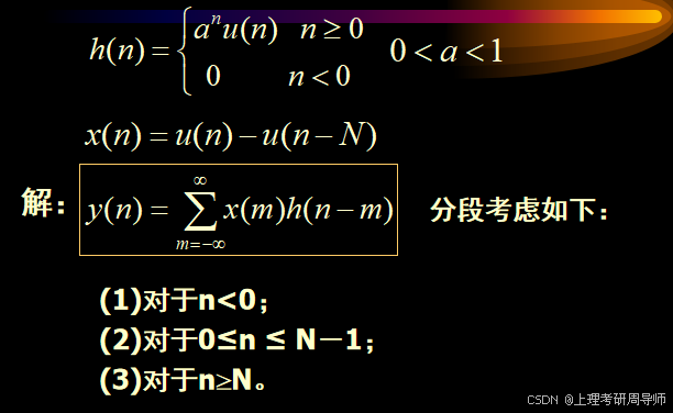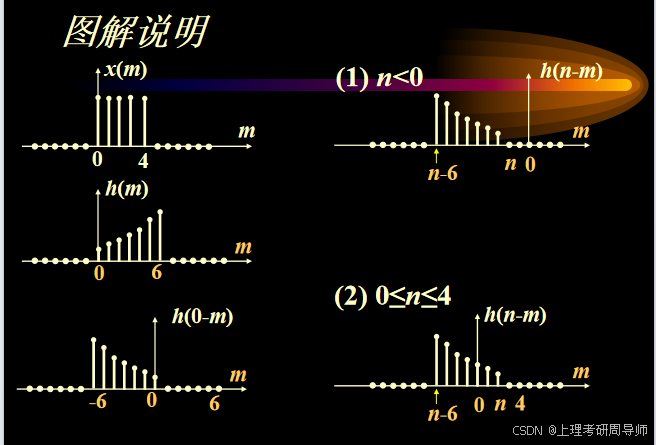 计算线性卷积时,一般要分几个区间分别加以考虑,下面举例说明。