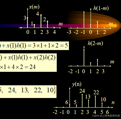 (3)相乘:将h(n-k)和x(k)的对应取样值相乘。