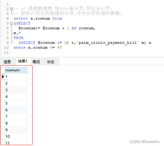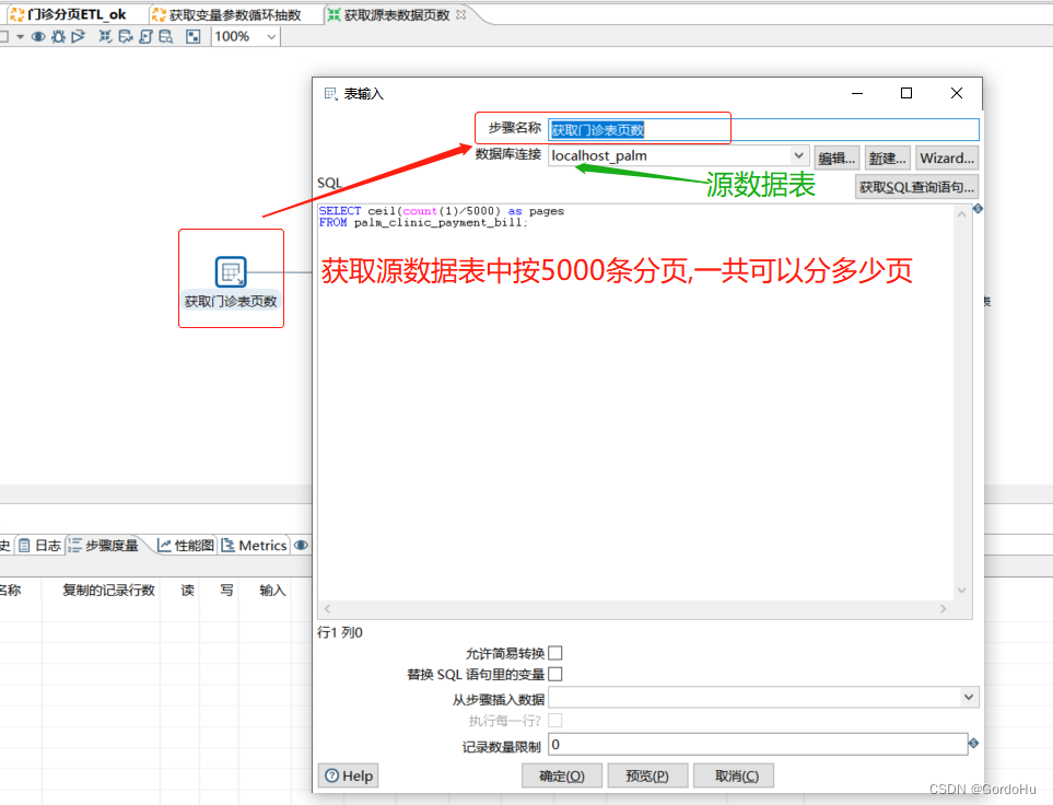 第二步: 创建(获取源数据页数)转换: 主要获取源数据表中按5000条分页的页数.