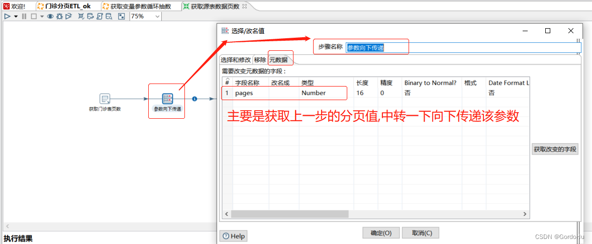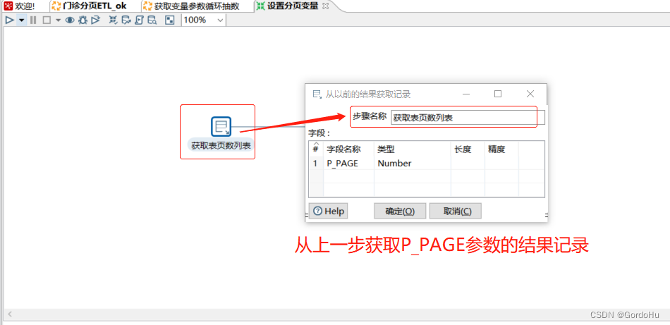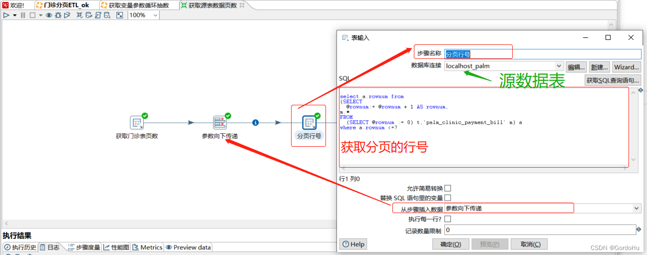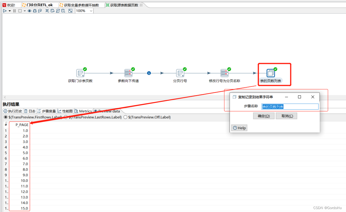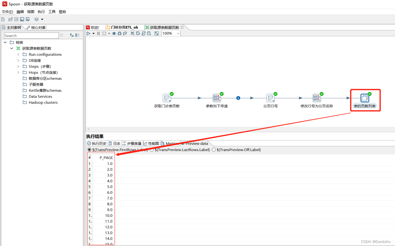 如下 第二步 ,第一个节点(获取门诊表页数):就是获取源表页数