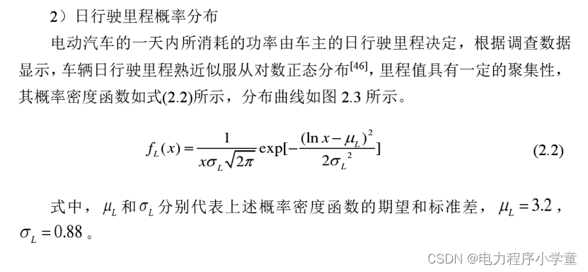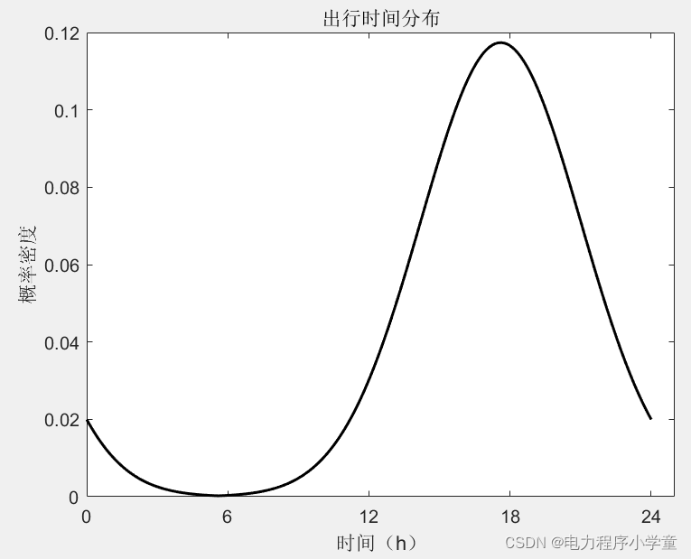 目录一、充电概率分布二、日行驶里程三、无序充电负荷模型四、蒙特卡洛法分析一、充电概率分布代码如下:us=17.6;ds=3.4;fs1=@(x)1/(ds*(2*pi)^0.5).*exp(-(x-us).^2./(2*ds^2));%us-12~24fs2=@(x)1/(ds*(2*pi)^0.5).*exp(-(x+24-us).^2./(2*ds^2));%0~us-12xs1=lins