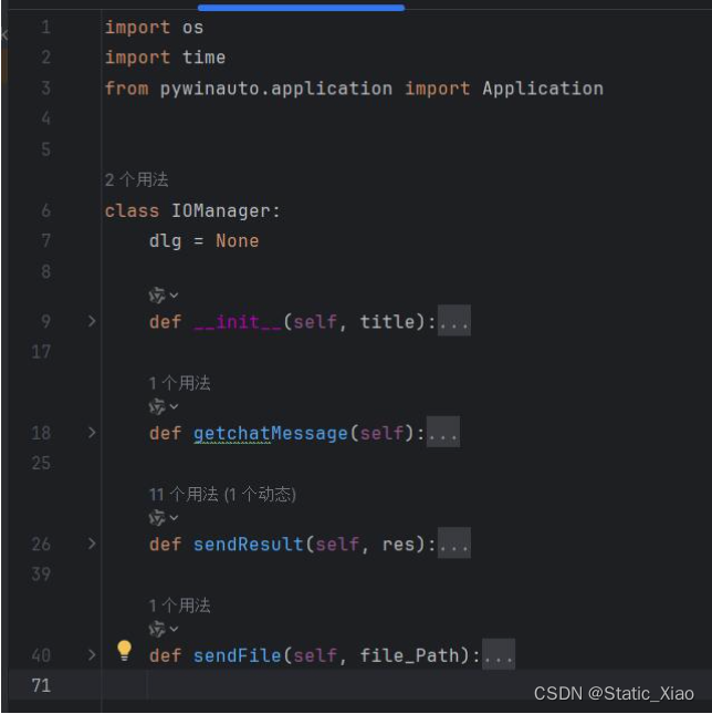 值得注意的是,该项目在Function中实例化了一个IOManager对象,这样的设计结构意味着,只要稍加修改便可以实现对多个微信联系人的控制以及相互交互。