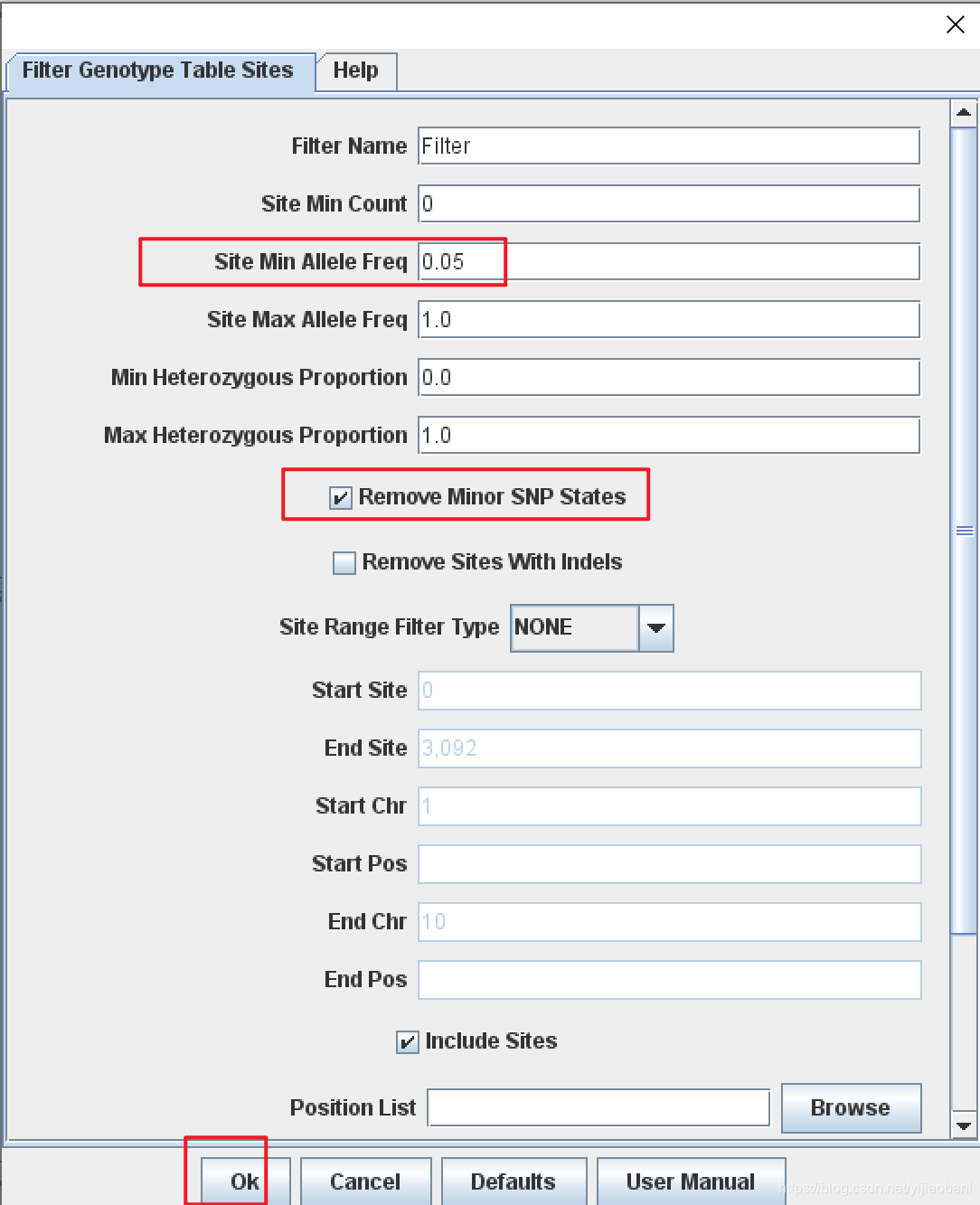 这里,选择次等位基因频率为0.05,MAF小于这个的位点删除,质控后的基因型数据保存为*Filter为后缀。