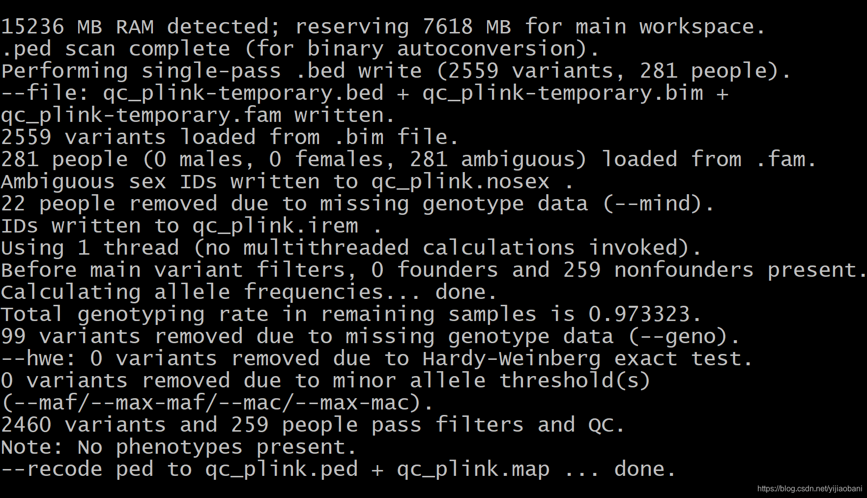 质控后的结果保存为qc_plink.ped, qc_plink.map.