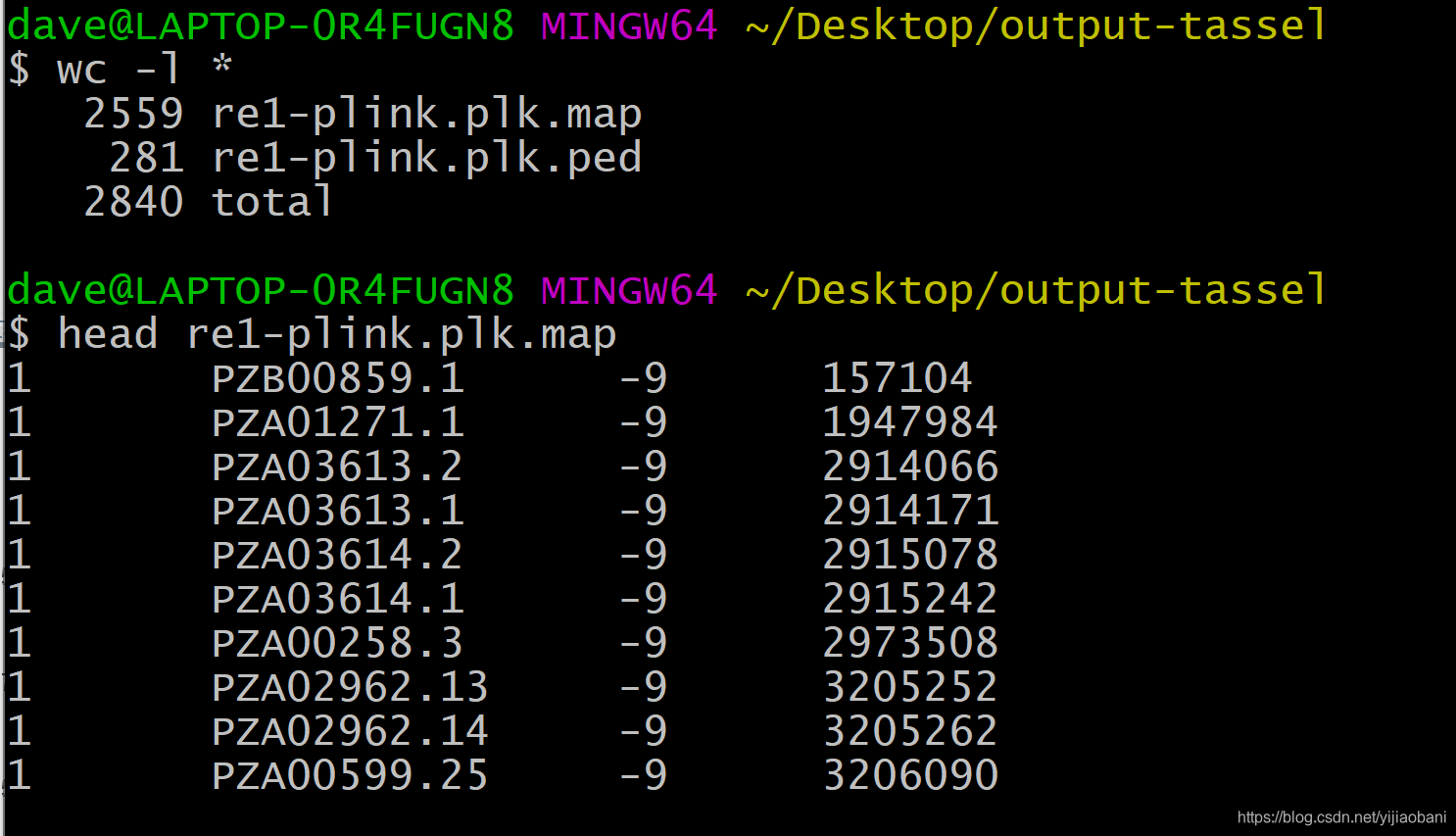 查看一下文件,re1-plink.plk.map, re1-plink.plk.ped
