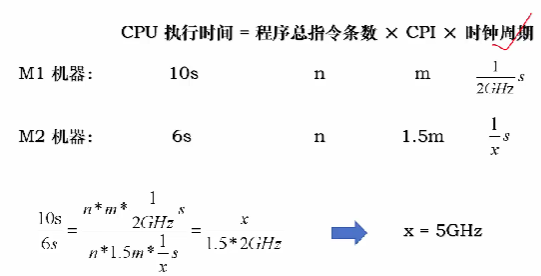 设程序总指令条数为X,M1的时钟周期数C1,那么M2的时钟周期数为1.5C1,M2的时钟频率为YGHZ