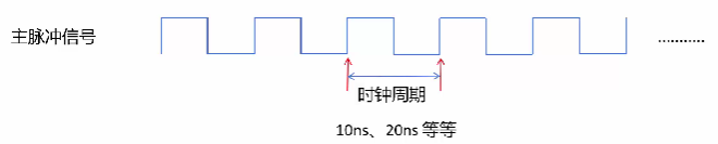 计算机中的时钟是可以产生定时信号的,CPU的主脉冲信号。这个主脉冲信号也是隔一段时间就发出的。主脉冲信号的宽度称为时钟周期(本质上就是一段时间而已)(图1)。可以是10ns、20ns等等,具体是多少取决于CPU的设计和制作者。