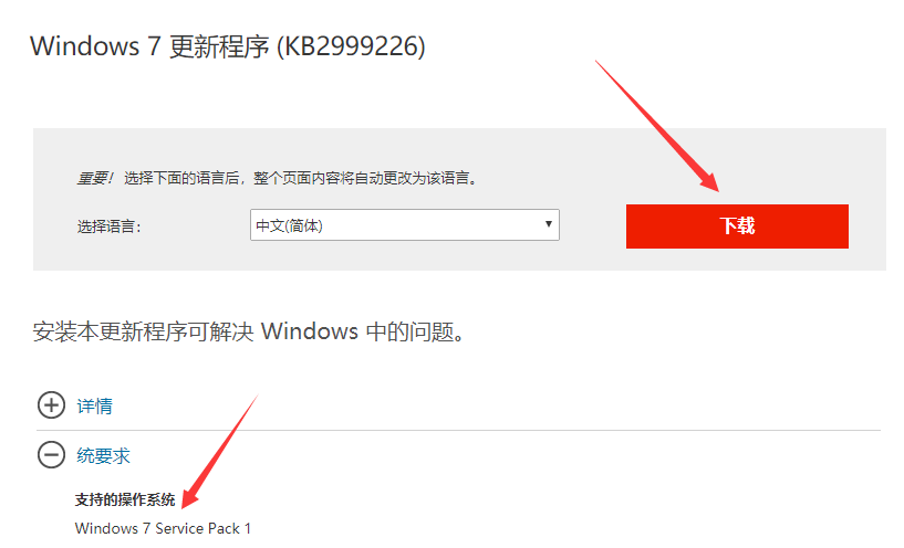 如果无法安装,系统要求是windows7 SP1。MSU KB2999226不能安装的原因就是系统不是Win7 SP1,只有更新到SP1才能更新这个补丁。所以把系统更新到SP1即可。