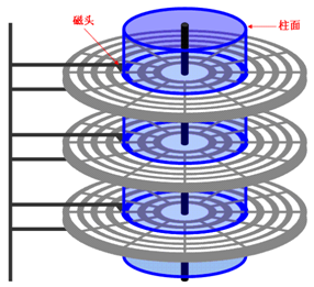 把一个戈丁手臂位置上所以的磁道合起来,组成一个柱面